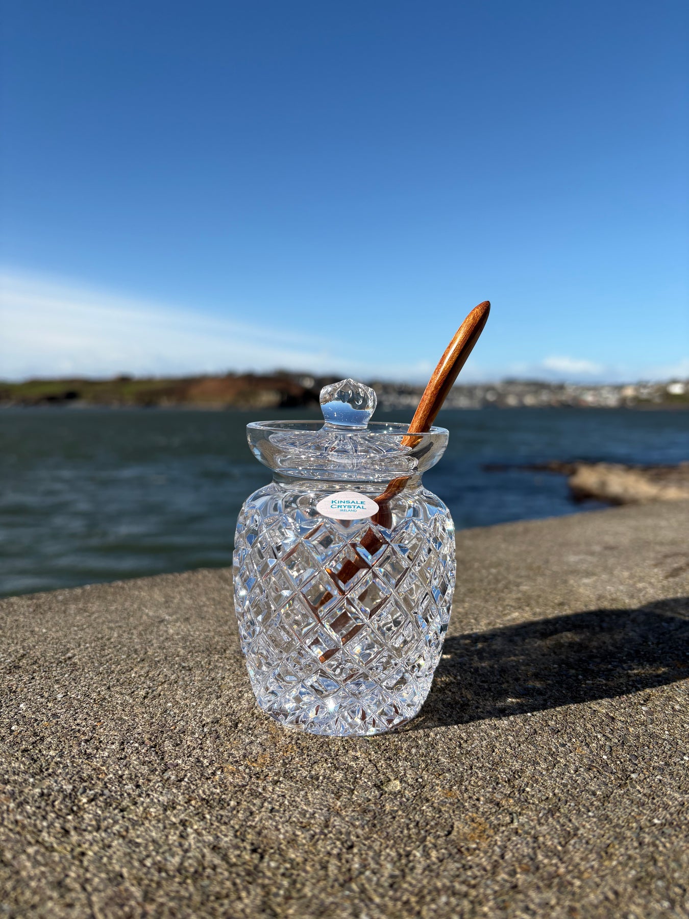 Add sparkle and a touch of luxury to your breakfast table with our beautifully crafted honey jar. Complete with a fitted lid and a carefully designed cut-out for a honey stick or spoon, it combines elegance with everyday practicality.
